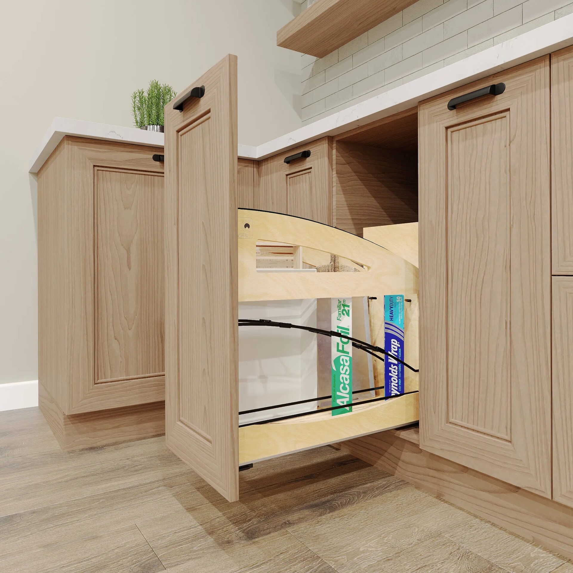 8" Craftsman Collection Base Cabinet Pullout with Tray Divider / Foil Wrap Holder with Blumotion Soft-Close