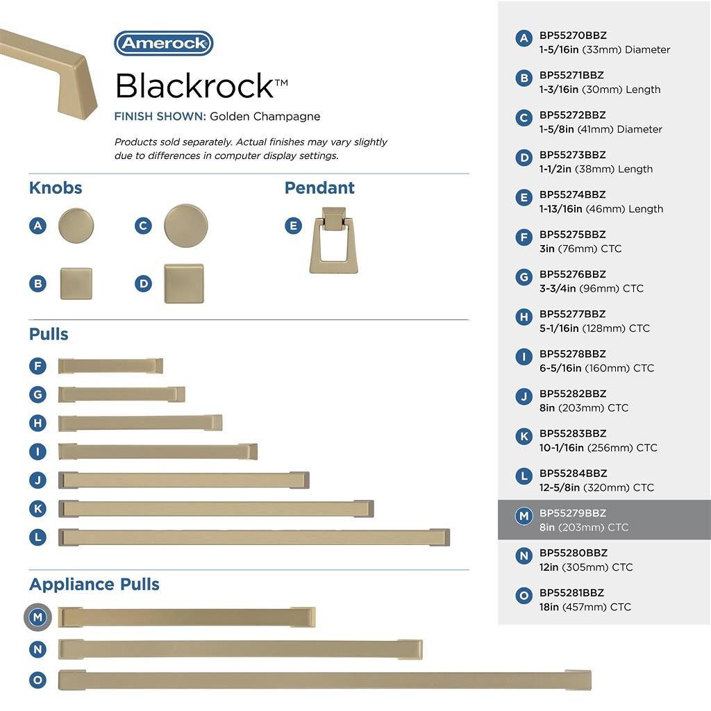Blackrock - 8" Appliance Pull CC Golden Champagne