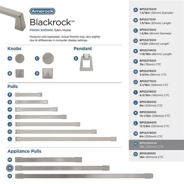 Blackrock - Appliance Pull 12" - Satin Nickel Bar Pull