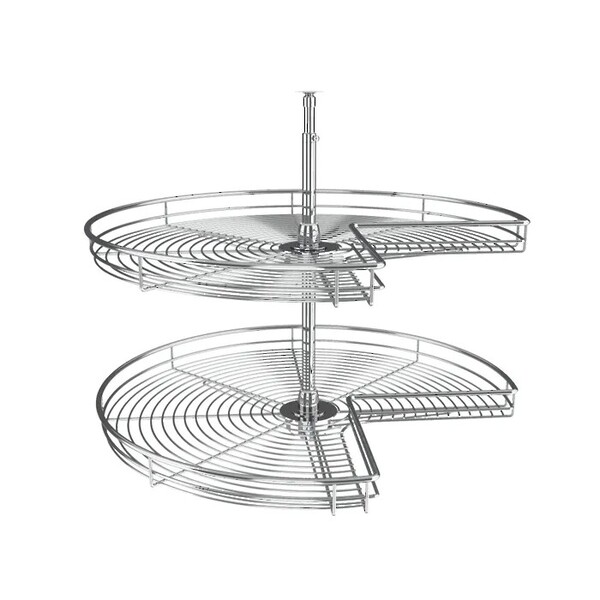 The Premiere Kidney Shape Lazy Susans are made of heavy duty chrome wire for contemporary kitchen designs. The 5472 Series is a two shelf set available in 28" or 32" diameters featuring our durable 1" chrome plated diameter shaft system with independent rotating hardware and a telescoping shaft for variations in cabinet height.