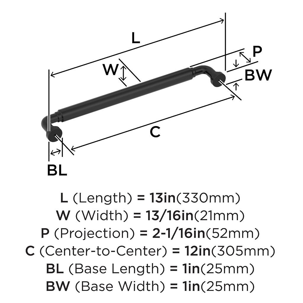 Coble Appliance Pull 12 inch CC Matte Black