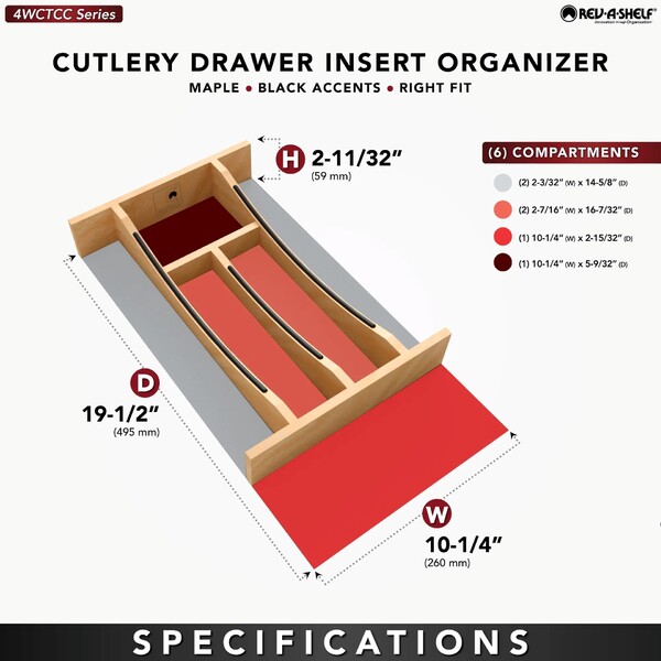 Now you can store your silverware in luxurious style with the 4WCTCC Series Craftsman Collection Right-Fit Cutlery Tray Inserts! These beautiful drawer inserts feature solid maple construction with a semi-gloss finish and recessed black wire accents for a stylish look that you can’t find anywhere else. The unique curved design provides both visual interest and even easier access to the contents of the drawer. Includes a removable black non-skid vinyl mat.