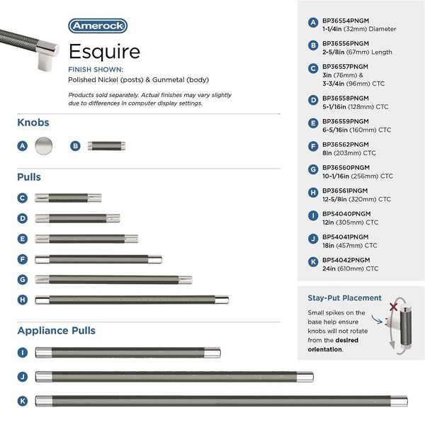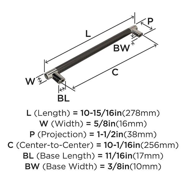 Esquire - Pull 256mm CC Polished Nickel/Gunmetal Bar Pull