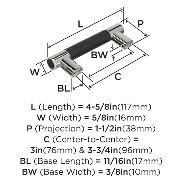 Esquire Pull 76mm/96mm CC Polished Nickel/Black Bronze