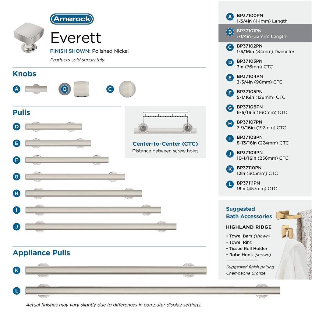 Everett Pull 76mm CC Polished Nickel