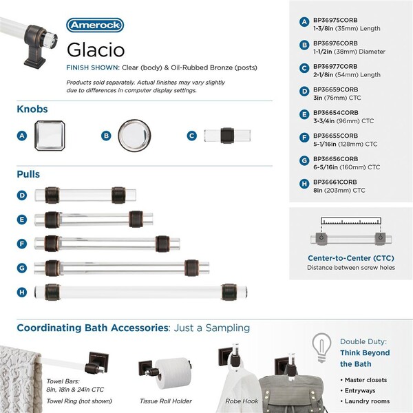 Glacio Knob 1-1/2 inch Clear/Oil-Rubbed Bronze