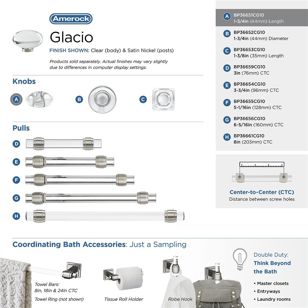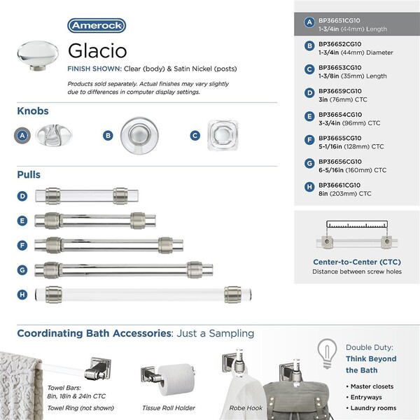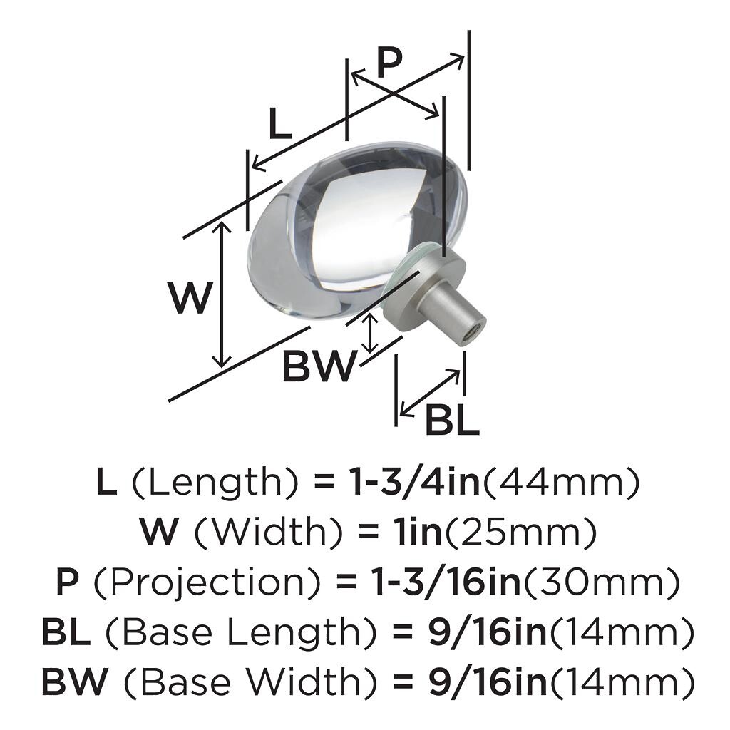 Glacio Knob 44mm Diameter Clear Crystal/Satin Nickel