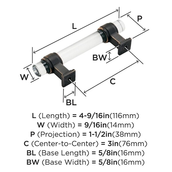 Glacio Pull 3 inch CC Clear/Oil-Rubbed Bronze