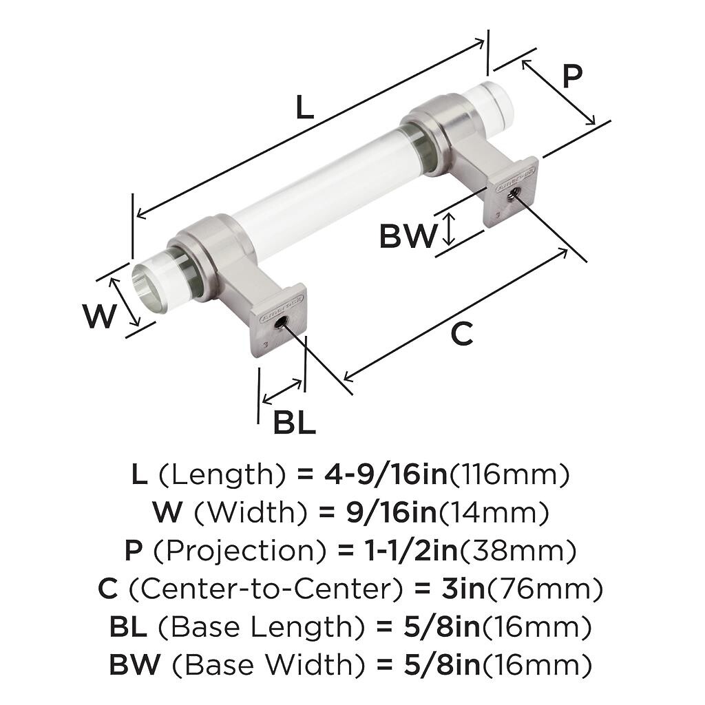 Glacio Pull 3 inch CC Clear/Satin Nickel