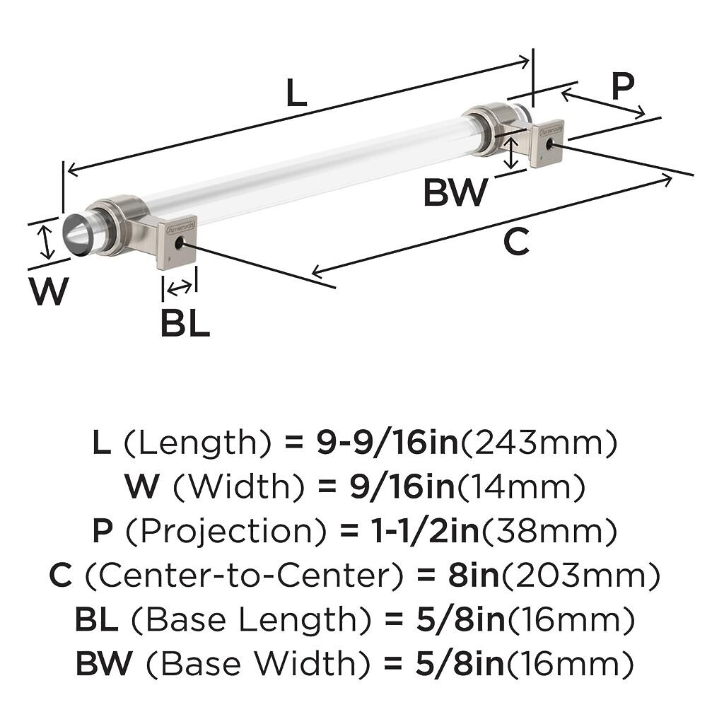 Glacio Pull 8 inch CC Clear/Satin Nickel