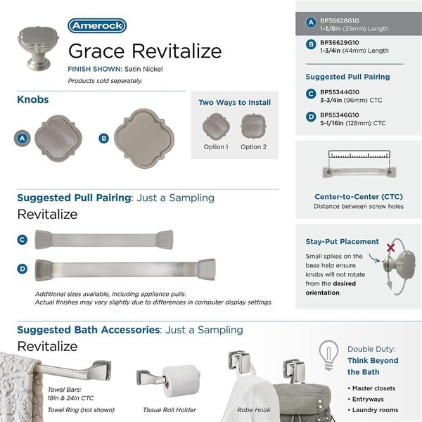 Grace Revitalize 44mm Floral Knob - Satin Nickel