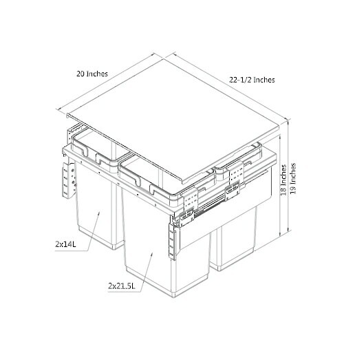 | 811024BC | 22-1/2" | 19-1/2" | 20" | 2x 14 Litres, 2x 21 Litres |