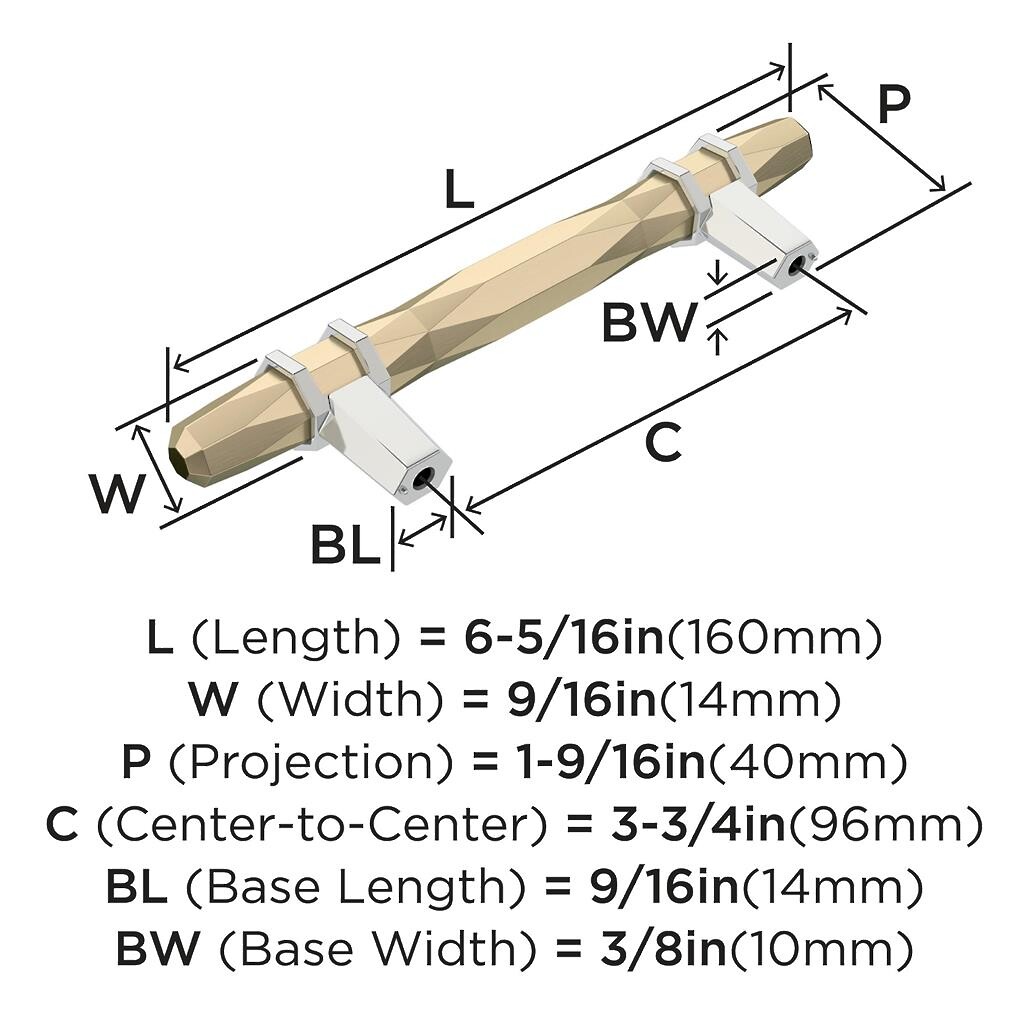 London Pull 96 mm Golden Champagne / Polished Chrome