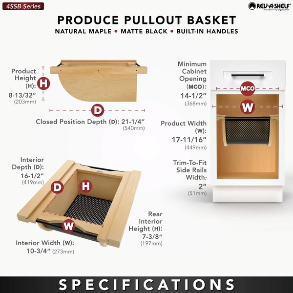 Natural Maple/Black Produce Basket for 18" Base Cabinets