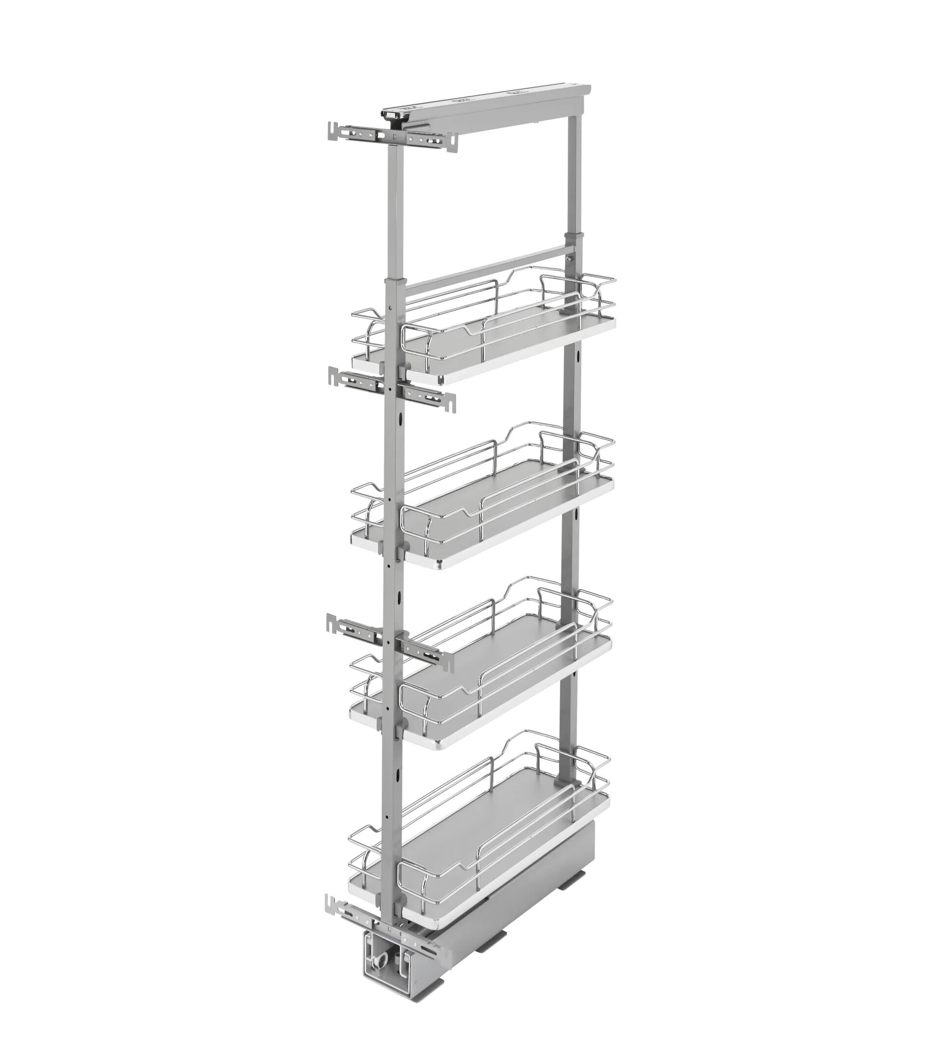 Rev-A-Shelf’s 5300 Pullout Pantry Series is the answer to your full access (frameless) cabinetry needs. The series offers basket depths for 24" deep cabinetry and comes in five different widths and four height ranges, one width available for face frame cabinets. Available in your choice of beautiful maple or contemporary gray solid bottom to match every kitchen style.