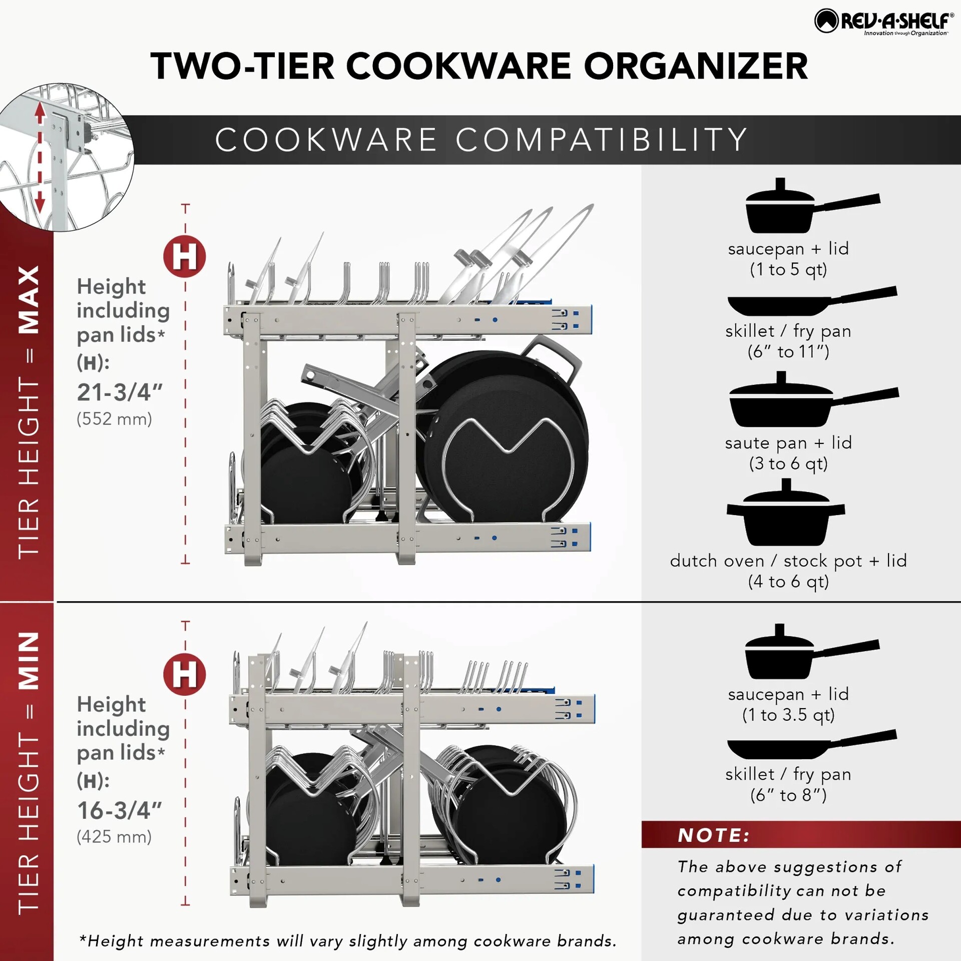 Rev-A-Shelf - 11-3/4" x 22" Base Cabinet Pullout 2 Tier Cookware Organizer
