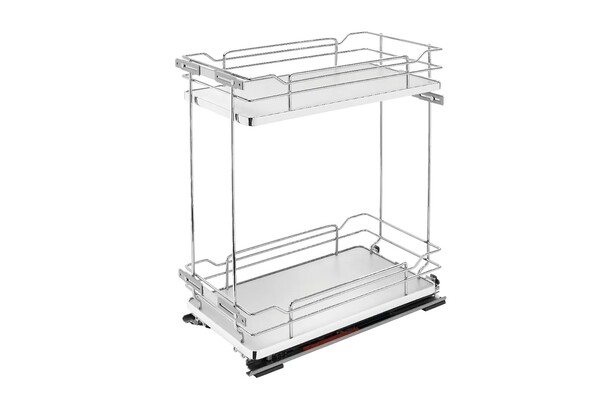 Bring the elegance with this chic design into your home with the Rev-A-Shelf 5322 Series. This Two-Tier Base Organizer combines clean lines, modern chrome or orion gray flat wire accents, and your choice of luxurious gray, maple or orion gray shelving surfaces to create a striking piece of organizational technology. Features patented door mount brackets, Blum soft-close slides system and heavy duty construction.