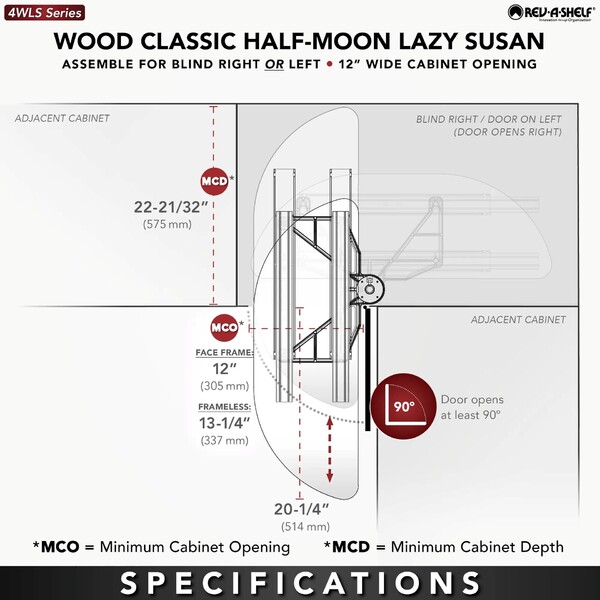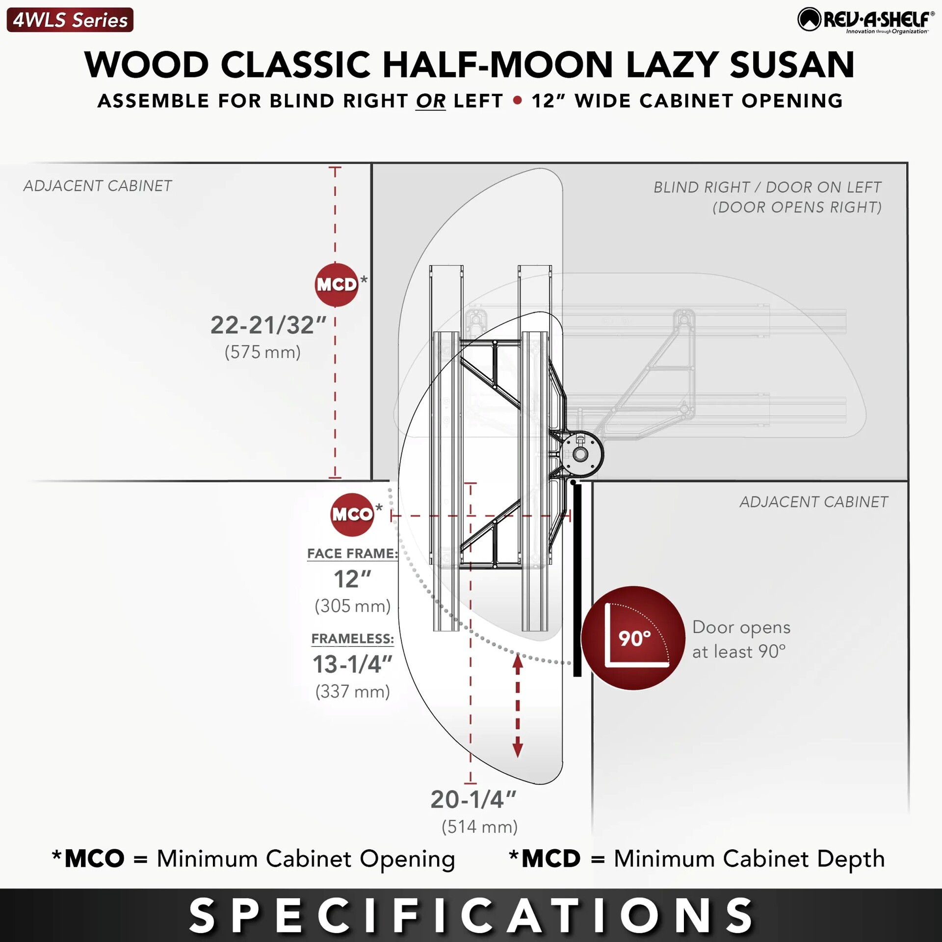 Rev-A-Shelf's 4WLS series half moon wood lazy susans are revered as the best on the market. Whether you are replacing an old unit or just adding a lazy susan to your base blind corner cabinet, you will not be disappointed with the high-quality construction and the durable pivot and pull hardware.