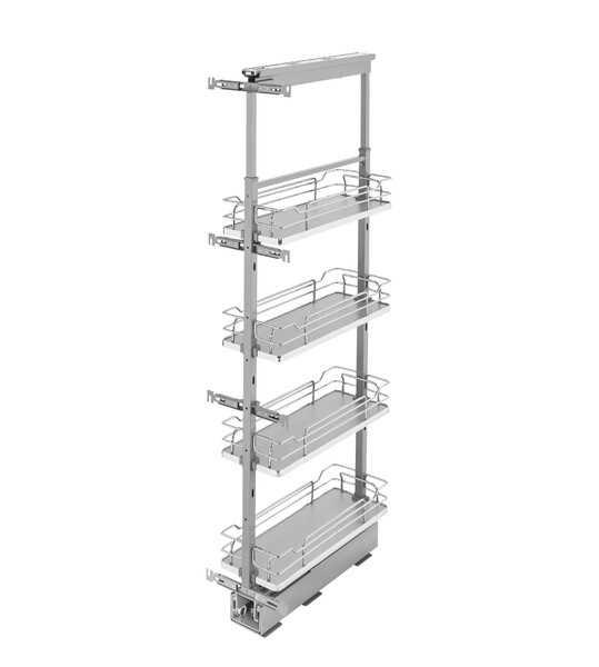 Rev-A-Shelf’s 5300 Pullout Pantry Series is the answer to your full access (frameless) cabinetry needs. The series offers basket depths for 24" deep cabinetry and comes in five different widths and four height ranges, one width available for face frame cabinets. Available in your choice of beautiful maple or contemporary gray solid bottom to match every kitchen style.