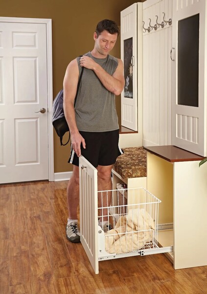 Another option for collecting dirty clothes, the Pullout Wire Hamper is available in four sizes and is easily removable for carrying to the laundry room. The HRV Series features full-extension slides and easy installation with just four screws.