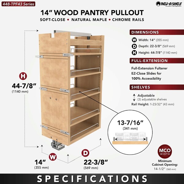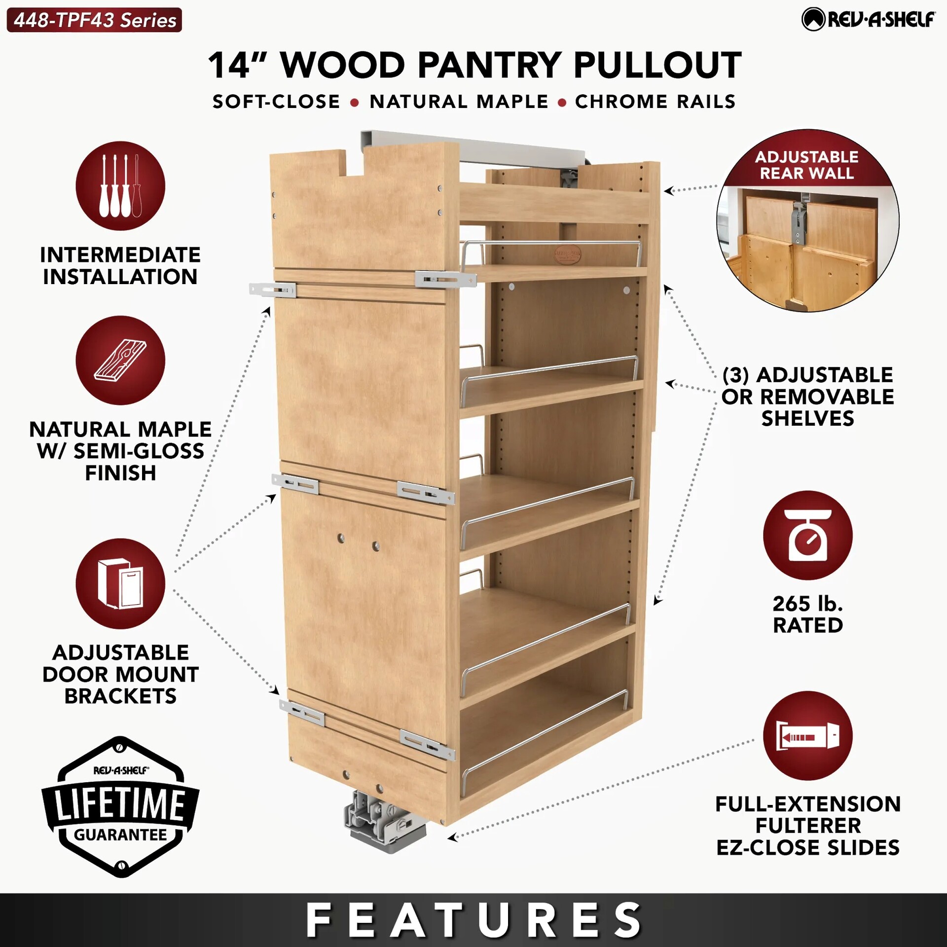 Rev-A-Shelf - 14" x 43" Maple Pullout Wood Tall/Pantry Accessories