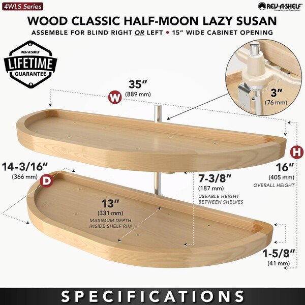 Rev-A-Shelf's 4WLS series half moon wood lazy susans are revered as the best on the market. Whether you are replacing an old unit or just adding a lazy susan to your base blind corner cabinet, you will not be disappointed with the high-quality construction and the durable pivot and pull hardware.
