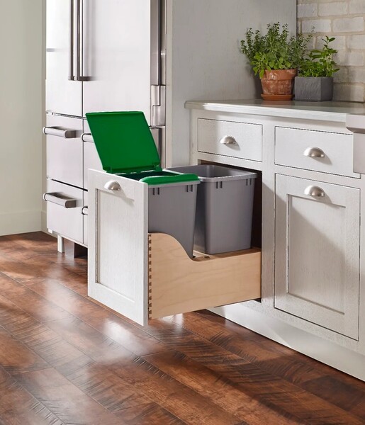 The 4WCSC Waste Containers feature beautiful wood dovetail construction and glides on a full-extension soft-close slide system.