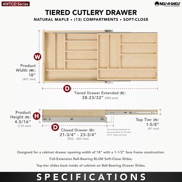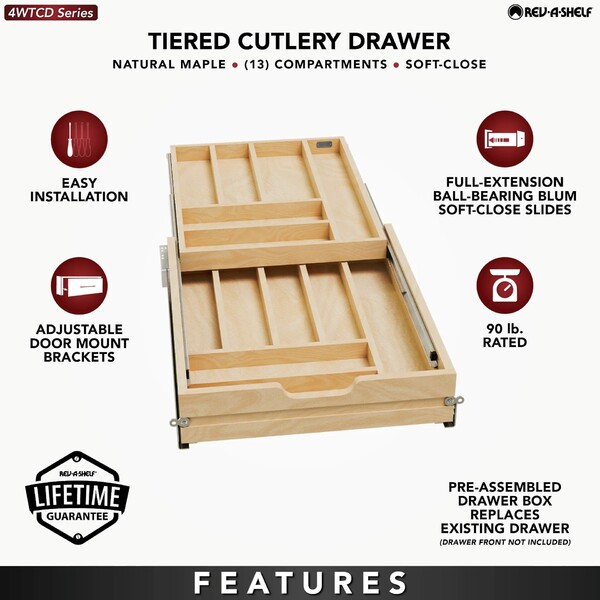 Rev-A-Shelf - 18" Opening - Complete System Two-Tier Soft-Close Cutlery Organizer