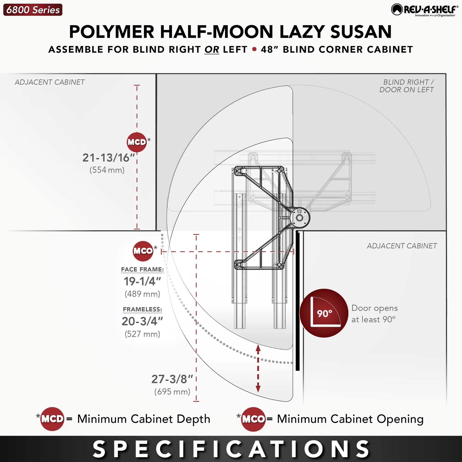 - Designed for a Blind Corner cabinet with 19-1/4" opening