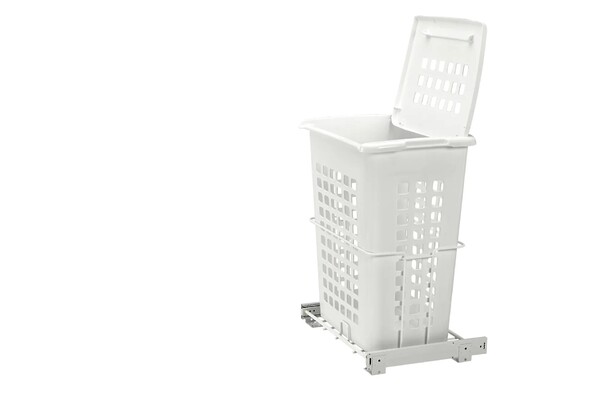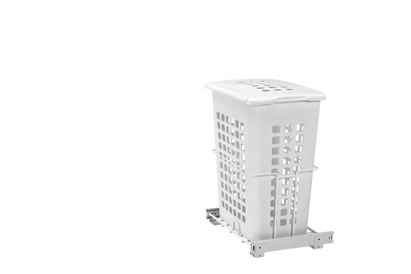 Keep dirty clothes from piling on the floor with Rev-A-Shelf's large Pullout Polymer Hamper. The HPRV Series features a shallow depth for closet and vanity applications, full-extension ball bearing slides, large capacity and installs with just four screws. This polymer hamper is available with or without a removable lid and with or without Rev-A-Shelf's classic door mount bracket kit.
