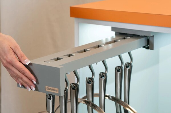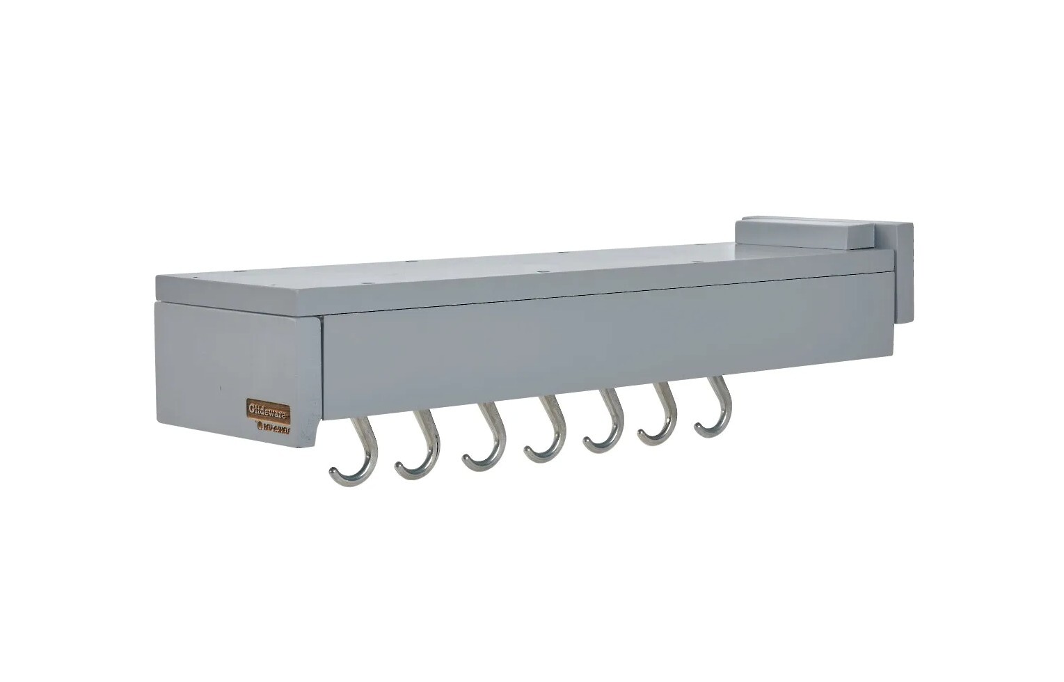 Glideware(TM) is a revolutionary organizing pullout that allows you to securely hang your accessories inside of your cabinet and brings them out only when you want them.