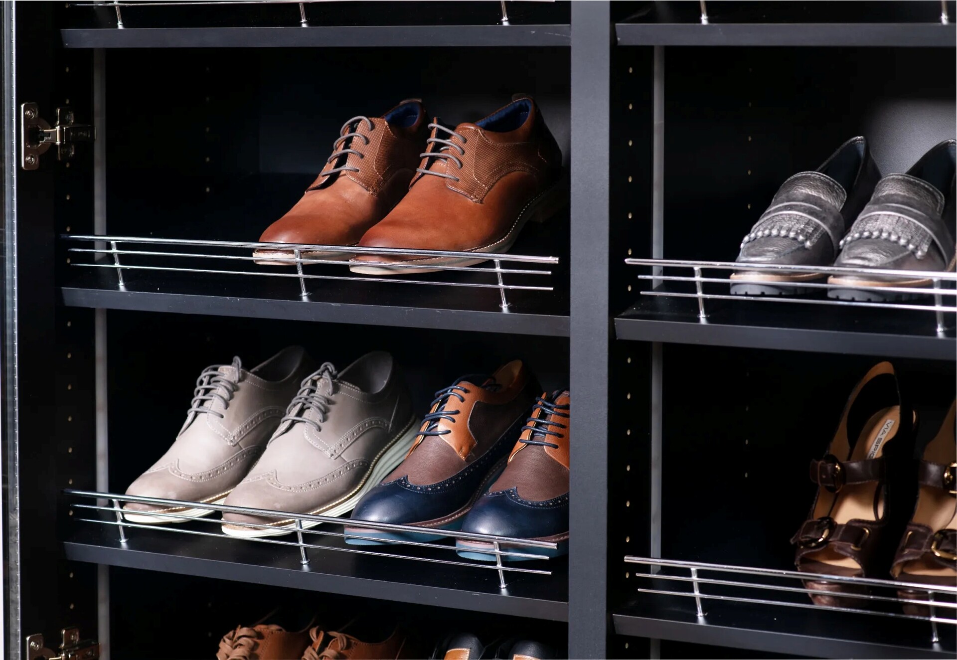 - Keeps shoes neatly organized on a shelf