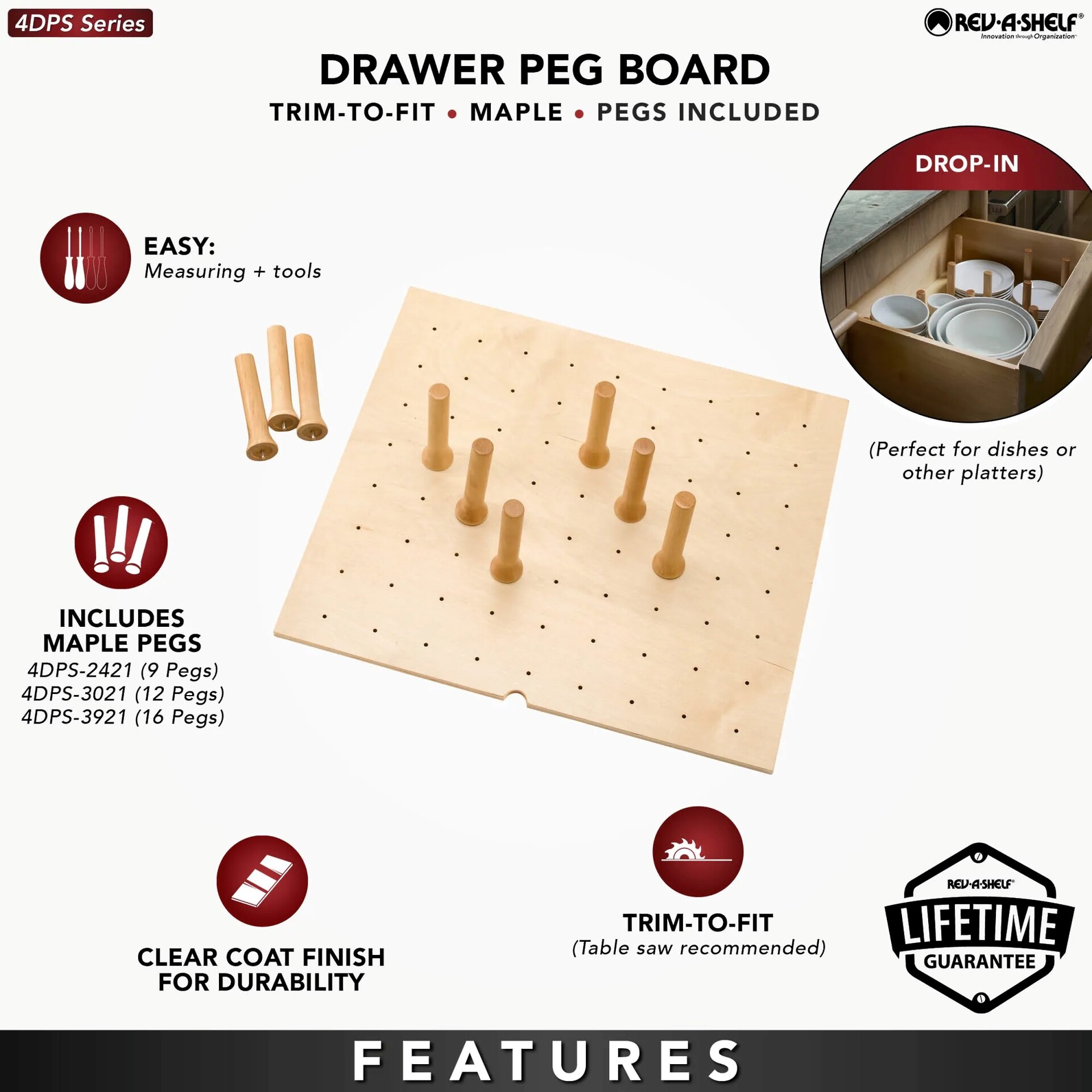 Rev-A-Shelf - 39" Maple Cut-To-Size Insert Peg System for Drawers
