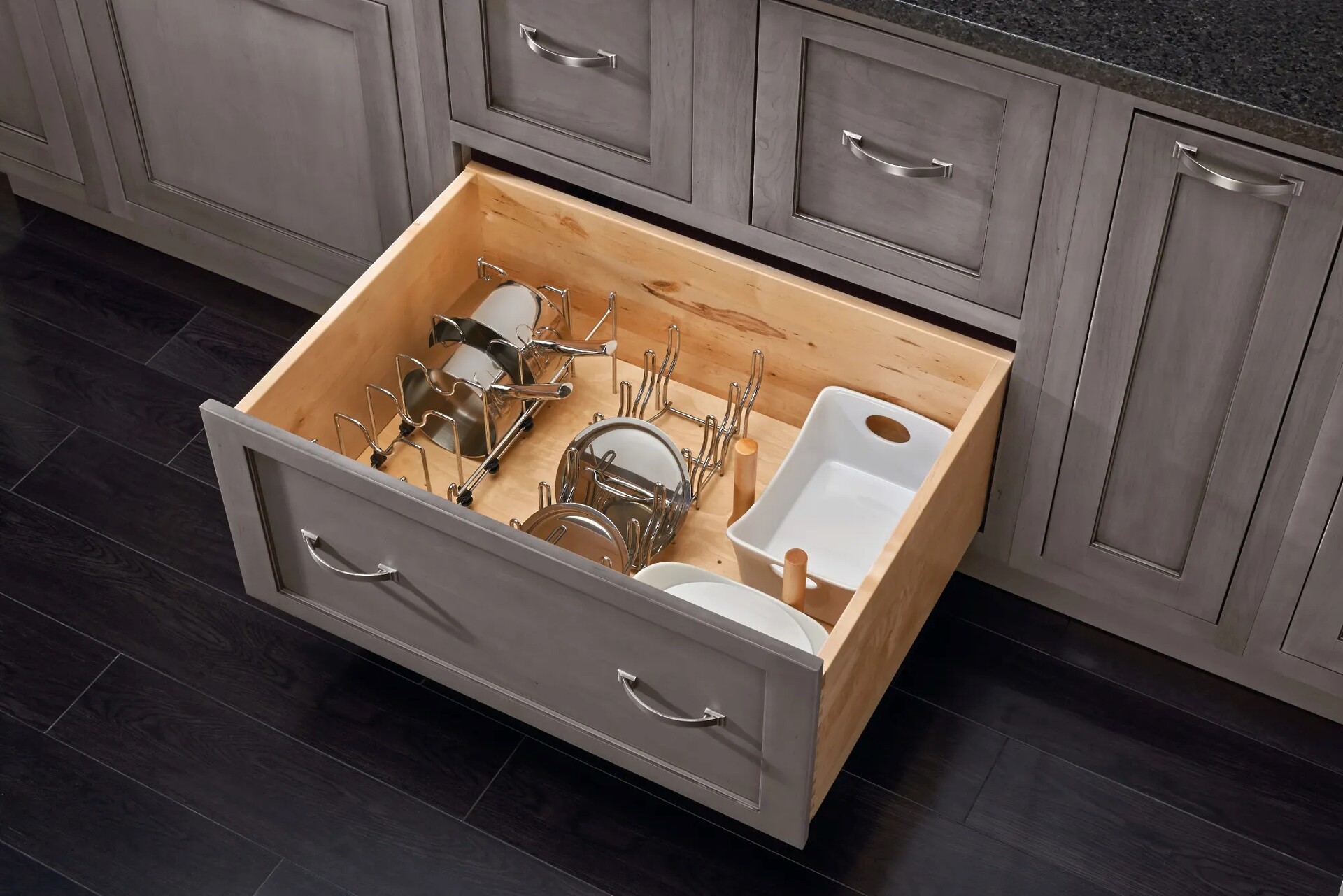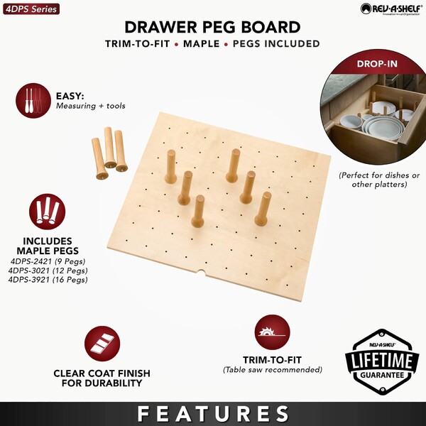 Organization is one thing every good chef has in common and now you can too with the use of our deep drawer peg boards and accessories. Available in three standard sizes, each size can be trimmed to fit and with the easy drop-in installation you can take your drawer from drab and messy to chic and orderly within seconds. Easy, press-in components keeps items organized, in reach, and when used in combination with one another you have a complete cooking station at your fingertips.