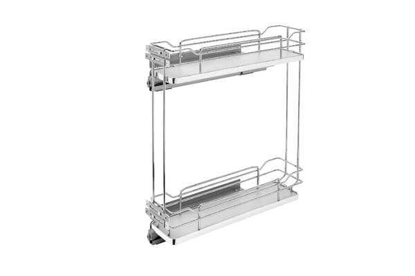Bring the elegance with this chic design into your home with the Rev-A-Shelf 5322 Series. This Two-Tier Base Organizer combines clean lines, modern chrome or orion gray flat wire accents, and your choice of luxurious gray, maple or orion gray shelving surfaces to create a striking piece of organizational technology. Features patented door mount brackets, Blum soft-close slides system and heavy duty construction.