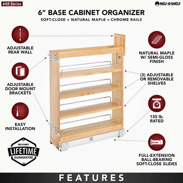 Rev-A-Shelf - 5" Maple Base Cabinet Pullout Organizer with Blumotion Soft-Close