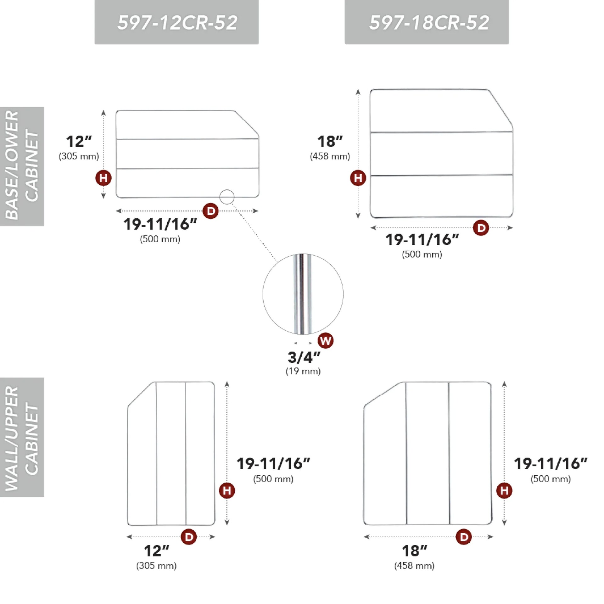 A no-brainer for organizing today’s kitchens, Rev-A-Shelf tray dividers are a practical solution for storing baking sheets, serving dishes, cake pans and more. The 597 Series is available in white or chrome with 12" or 18” height options. One set consists of 1 divider, screw-in clips & fasteners.