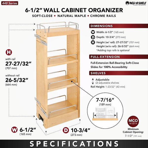 Rev-A-Shelf - 6-1/2" Cabinet Pullout Organizer with Soft-Close Wall Accessories