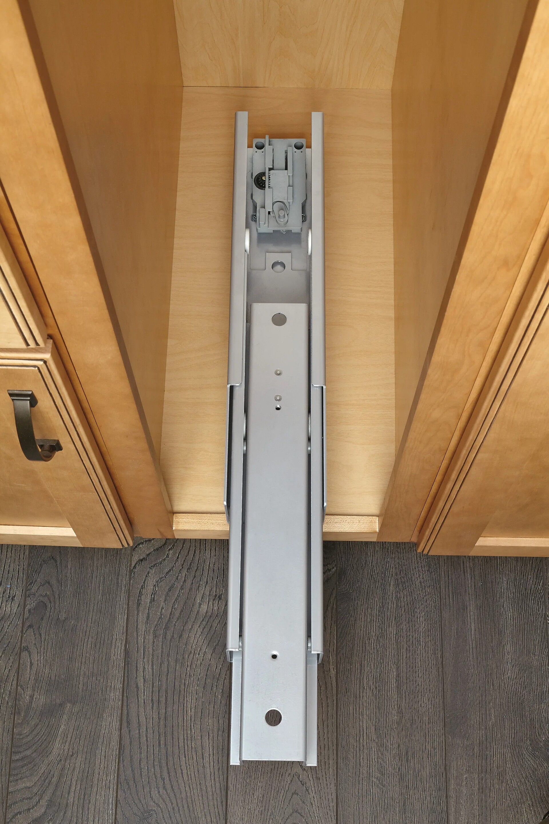 - Glides quietly on 200 lb. rated full-extension, soft-close slide system
