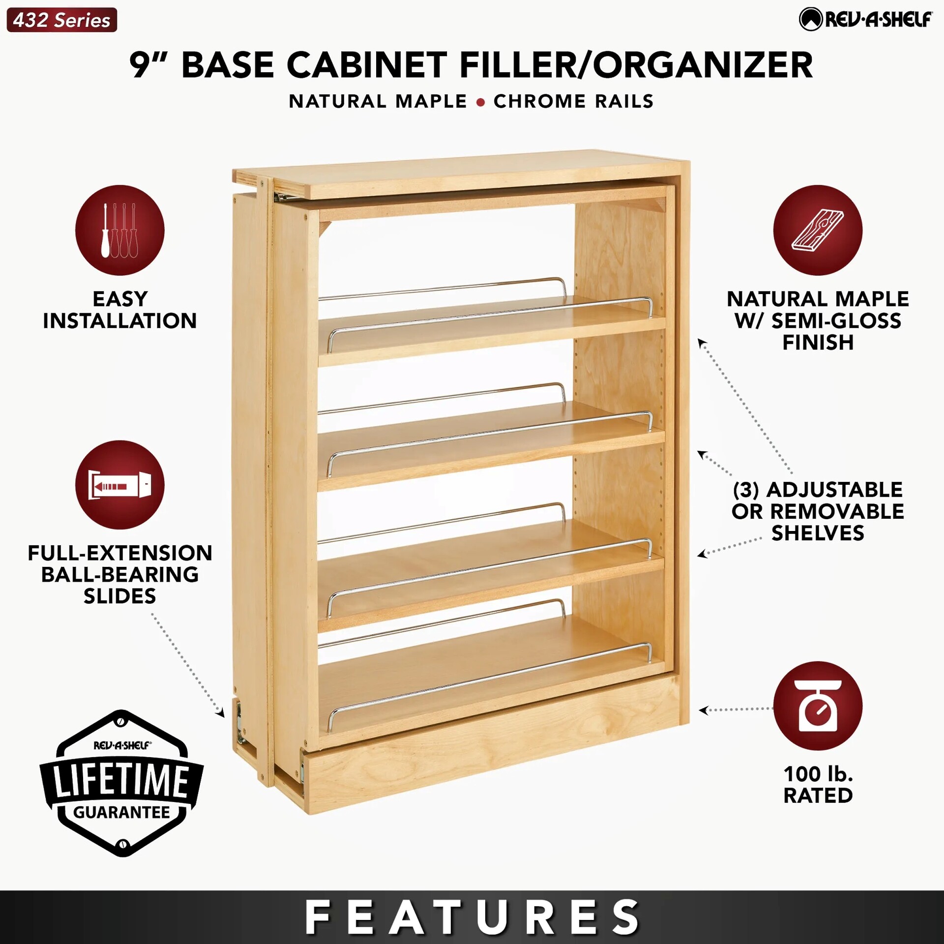Rev-A-Shelf - 9" Filler Pullout Organizer with Wood Adjustable Shelves