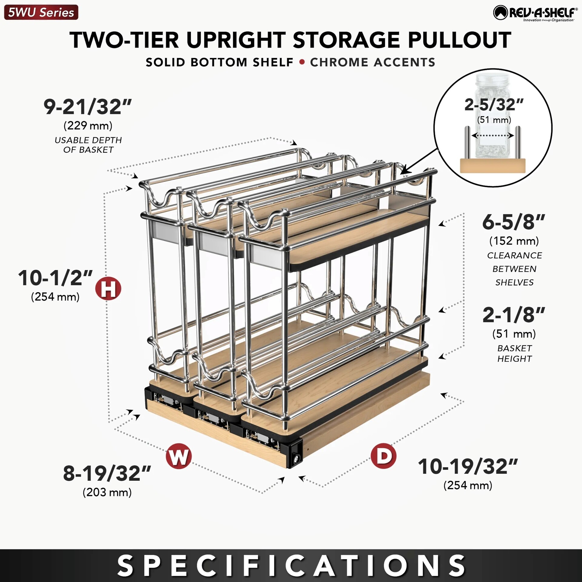 - Fits inside cabinet depths of 10-3/4”