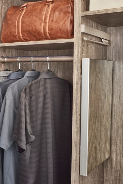 Who doesn't need an extra hand from time to time? The Deluxe Valet Rod is a no-brainer addition to any closet or laundry room with easy installation, luxurious steel rack housing with full-extension, ball-bearing slides, and a sturdy 35 lb. weight capacity. Available in multiple finishes that coordinate with all Sidelines by Rev-A-Shelf®