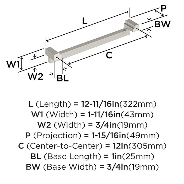 Rockhurst Appliance Pull 12 inch CC Satin Nickel