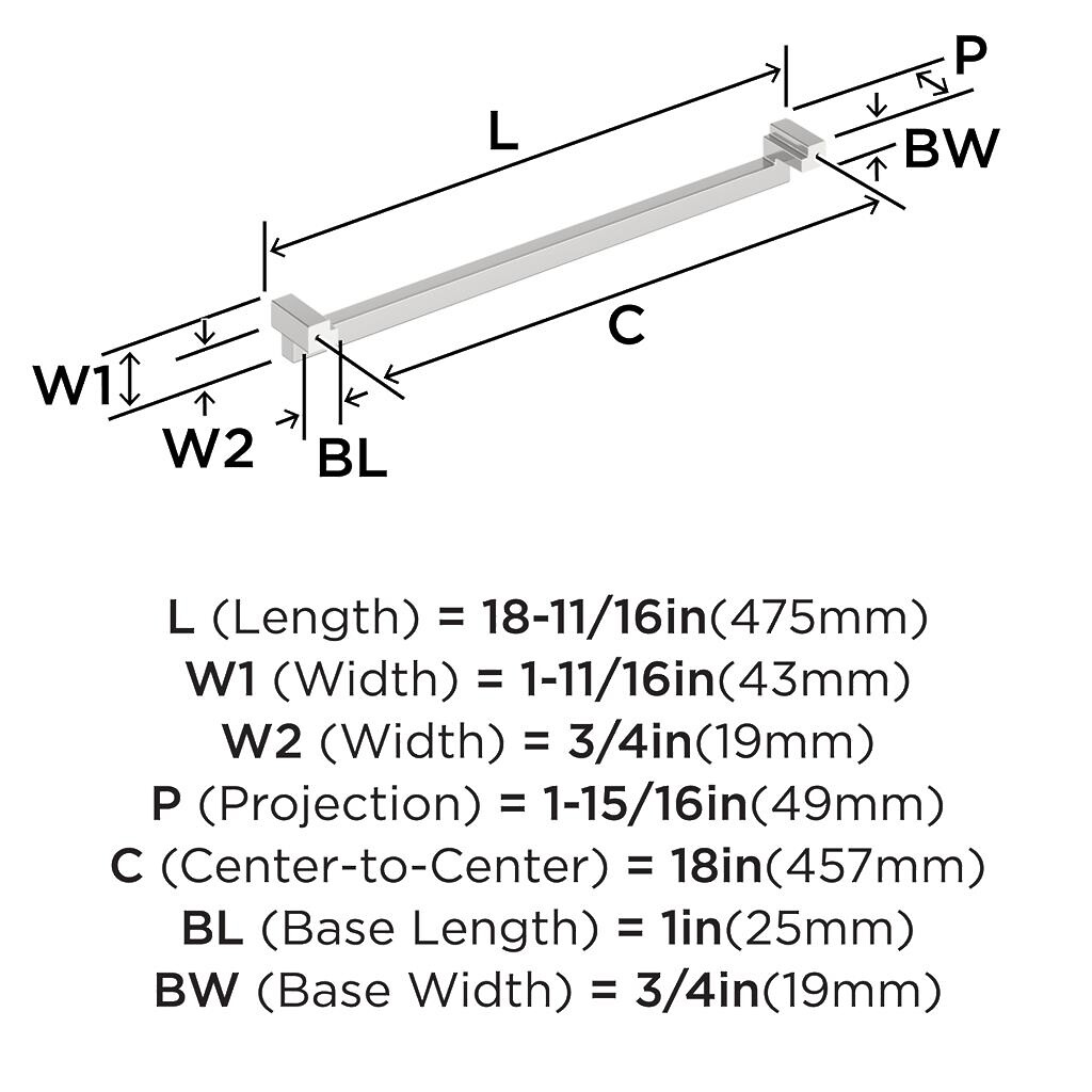 Rockhurst Appliance Pull 18 inch CC Polished Chrome