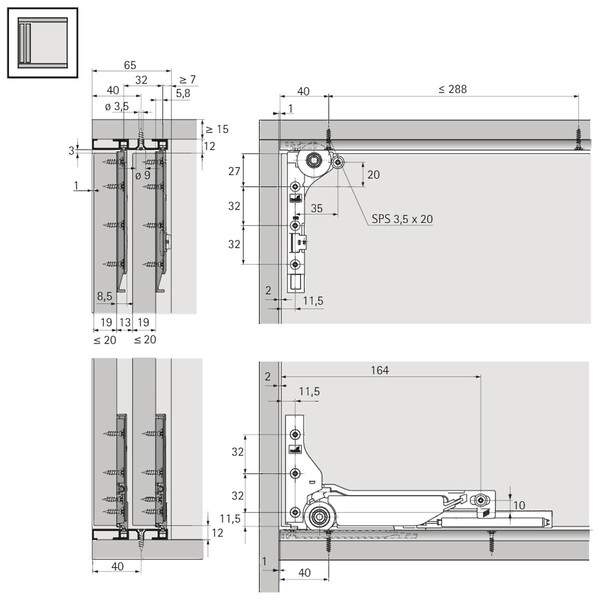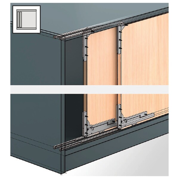 SlideLine M INSET Profile set: 2-track runner profile for screwing on / gluing on, 2500 mm