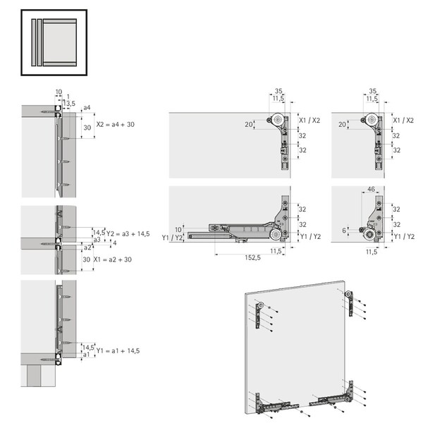 The SlideLine M 2-Profile Set at 16 mm height and 2500 mm length is a sliding door bottom-runner profile set used to guide sliding furniture doors in an overlay position. It includes two pre-drilled, silver-anodized aluminium runner profiles, mounting clips, and fixing hardware and can be cut to fit your specific installation.