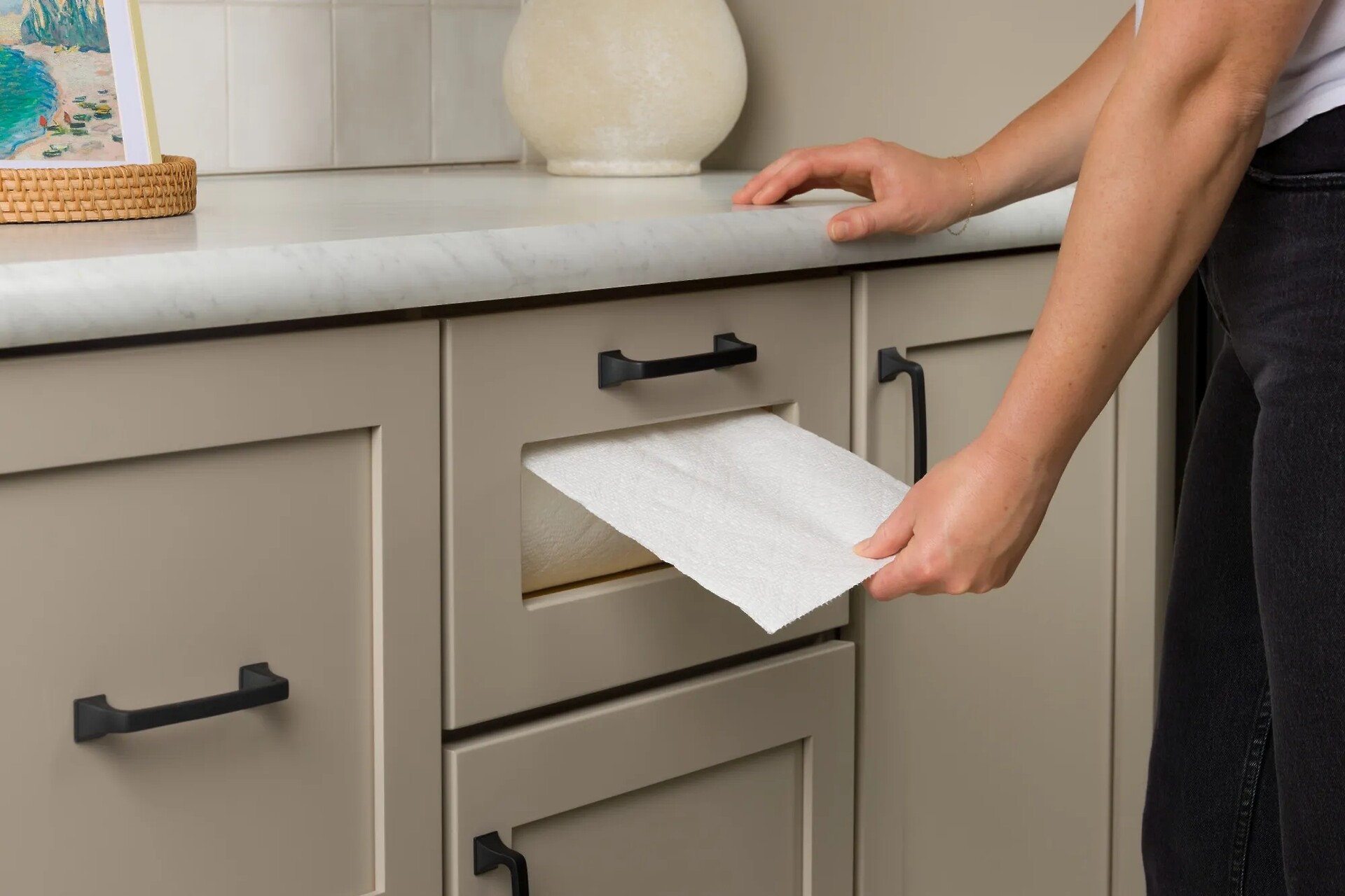 Reduce clutter on your countertops while still enjoying easy access to your paper towels with the 4PTD Series! This innovative drawer system offers ample storage space and a removable dowel for easy refilling.